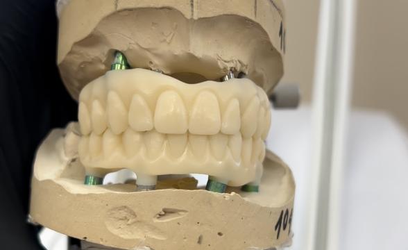 Главная»Блог»Цирконієва конструкція "все на 4х" (All-on-4) — це преміальний метод незнімного протезування, при якому повний протез із діоксиду цирконію фіксується на чотирьох титанових імплантатах.