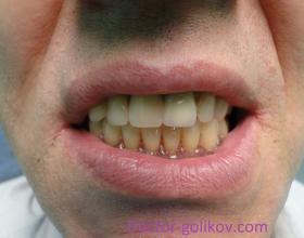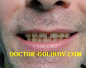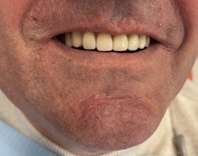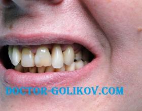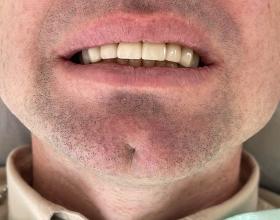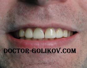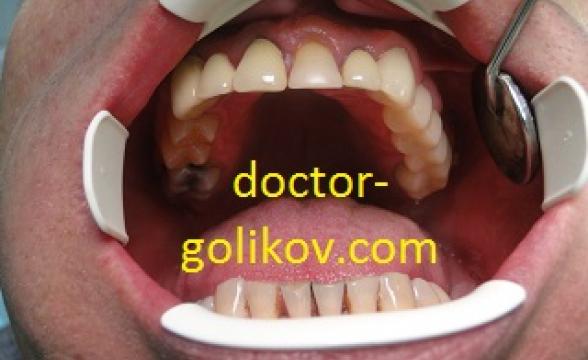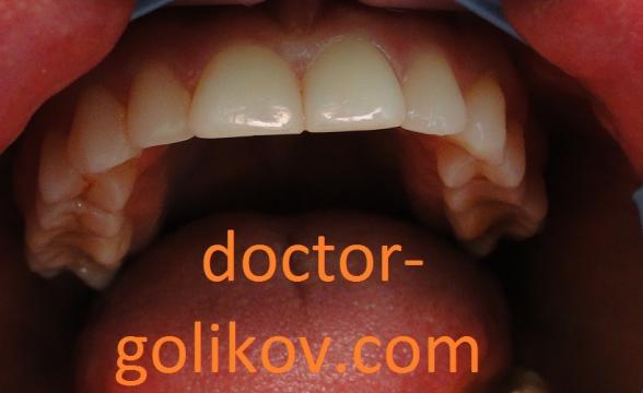Протезирование 4 живых зубов верхней челюсти металлокерамическими коронками