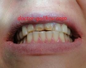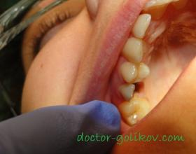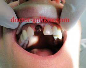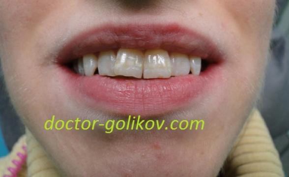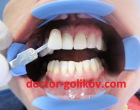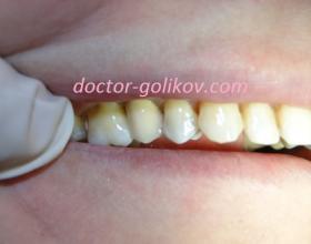 Установка временных коронок после подпиливания своих зубов