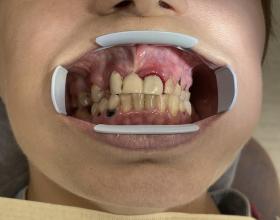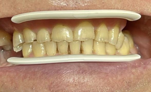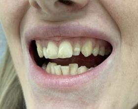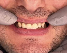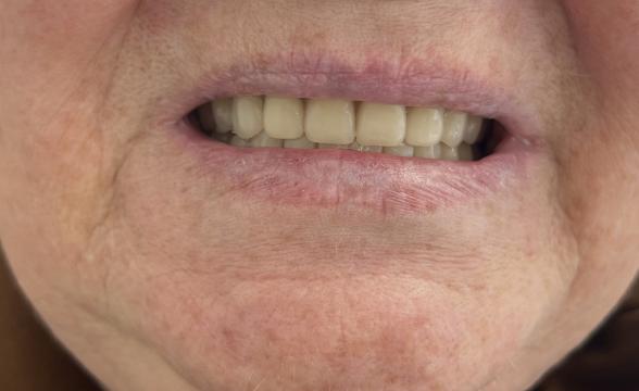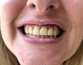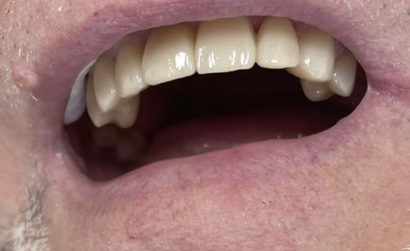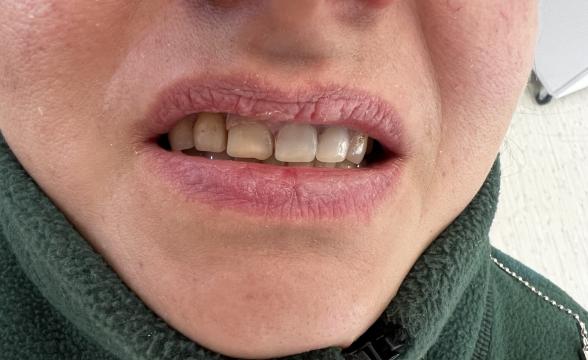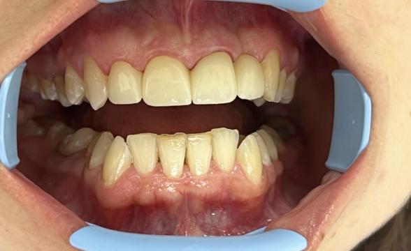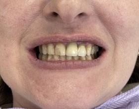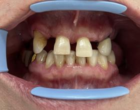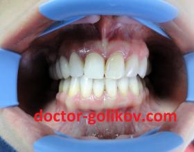 Установка готовых отдельных металлокерамических коронок на 12-22 зубы, вид сбоку
