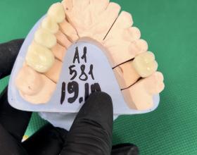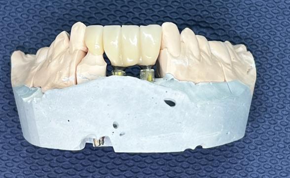 Временное протезирование: мостовидный протез на верхней челюсти 23-27 зубы, Цвет А3.