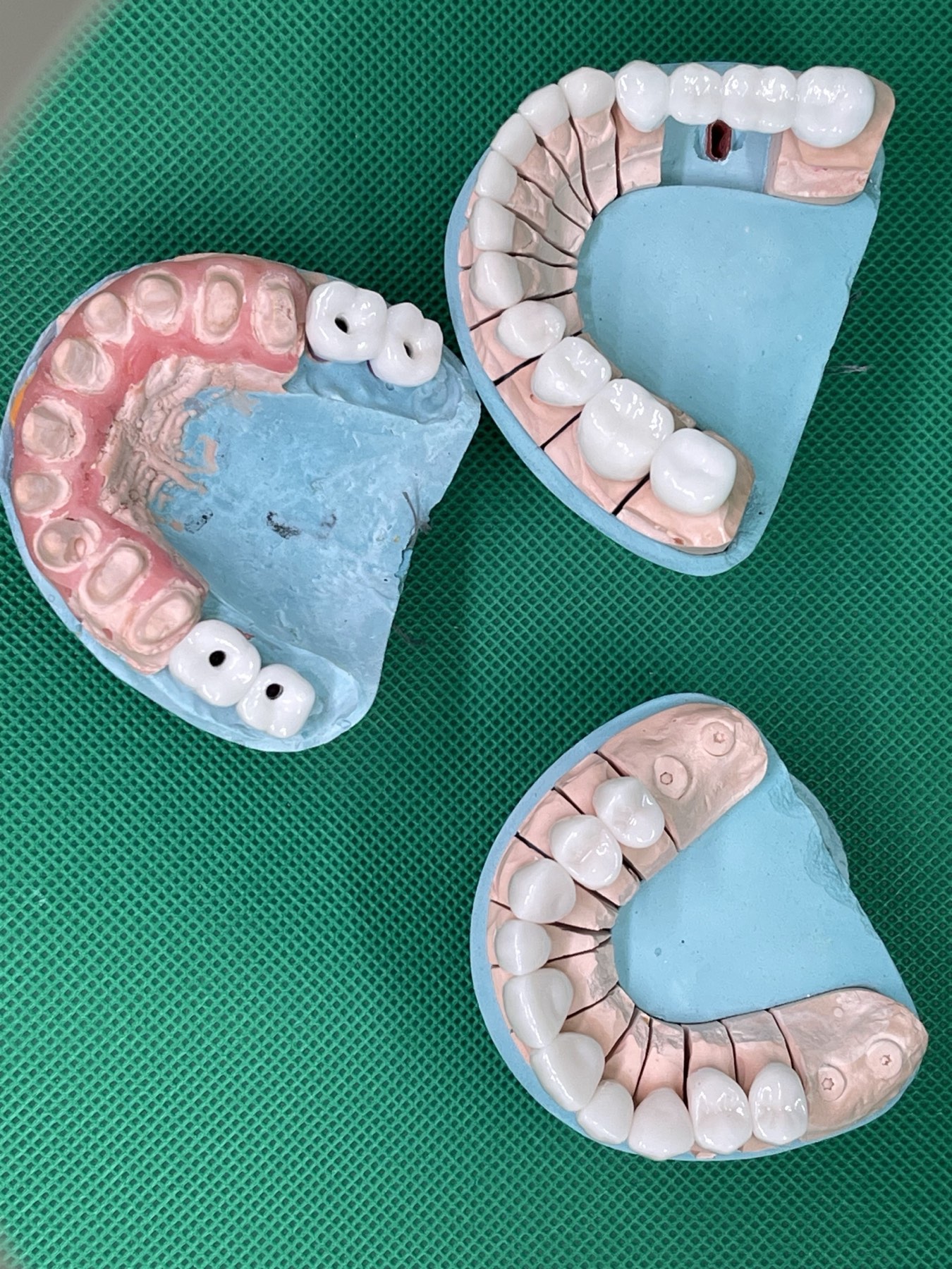 - Виготовлення і встановлення протезів, які можуть бути у вигляді коронок, мостів або знімних протезів. Протези закріплюються на абатментах, забезпечуючи стабільність і естетику.